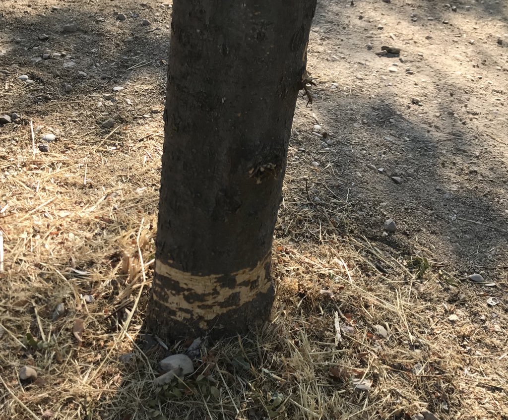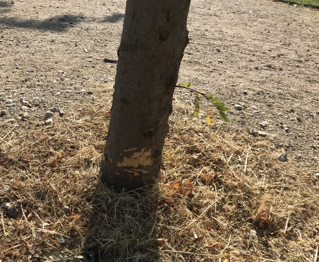 Nos seguimos encontrando muestras de practicas dañinas para el arbolado, como veis en las fotos, el hilo de la desbrozadora, si el operario no tiene cuidado,causa daños en la base que años mas tarde puede llegar a secarlo por completo.