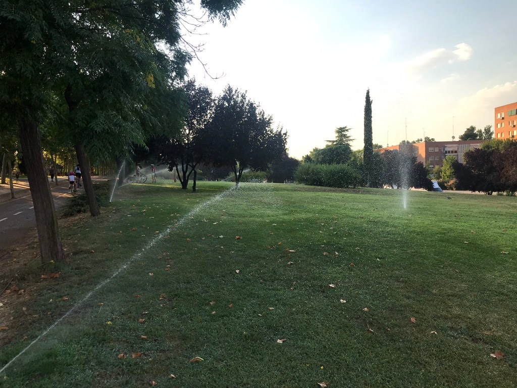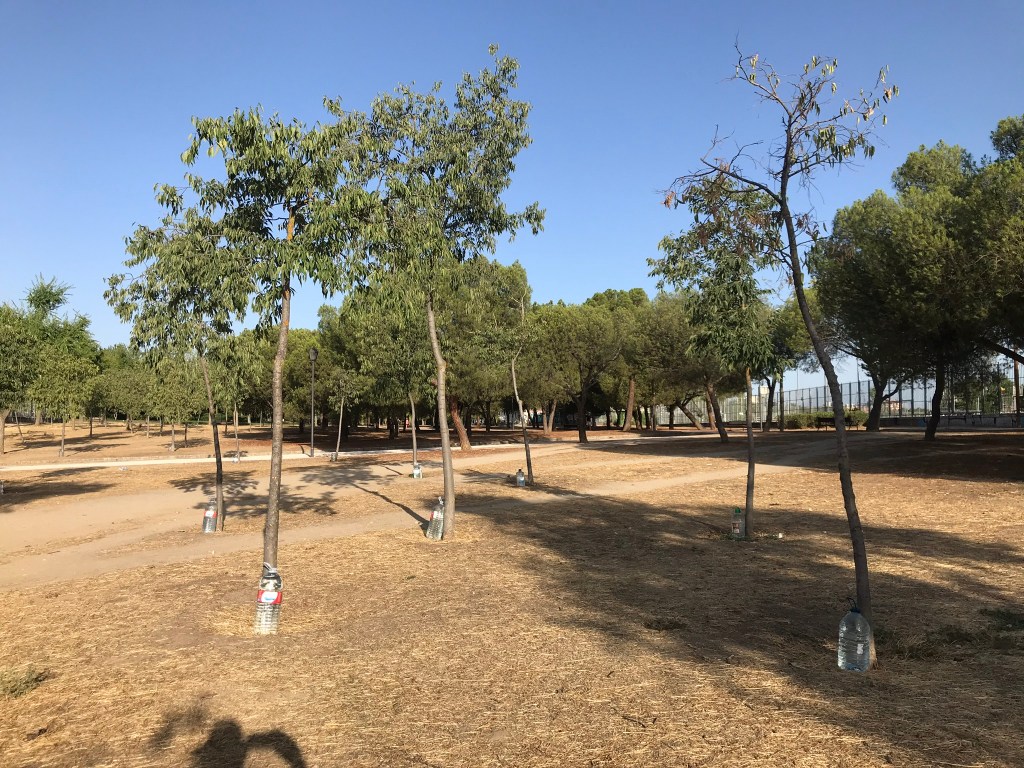 Hay más zonas internas del parque que están sufriendo esta falta de riego, otras zonas que años atrás tenían riego automático y este año, no sabemos porque, no funcionan. Además no entendemos que las praderas que están al borde de la Avenida de los Poblados si están regadas.