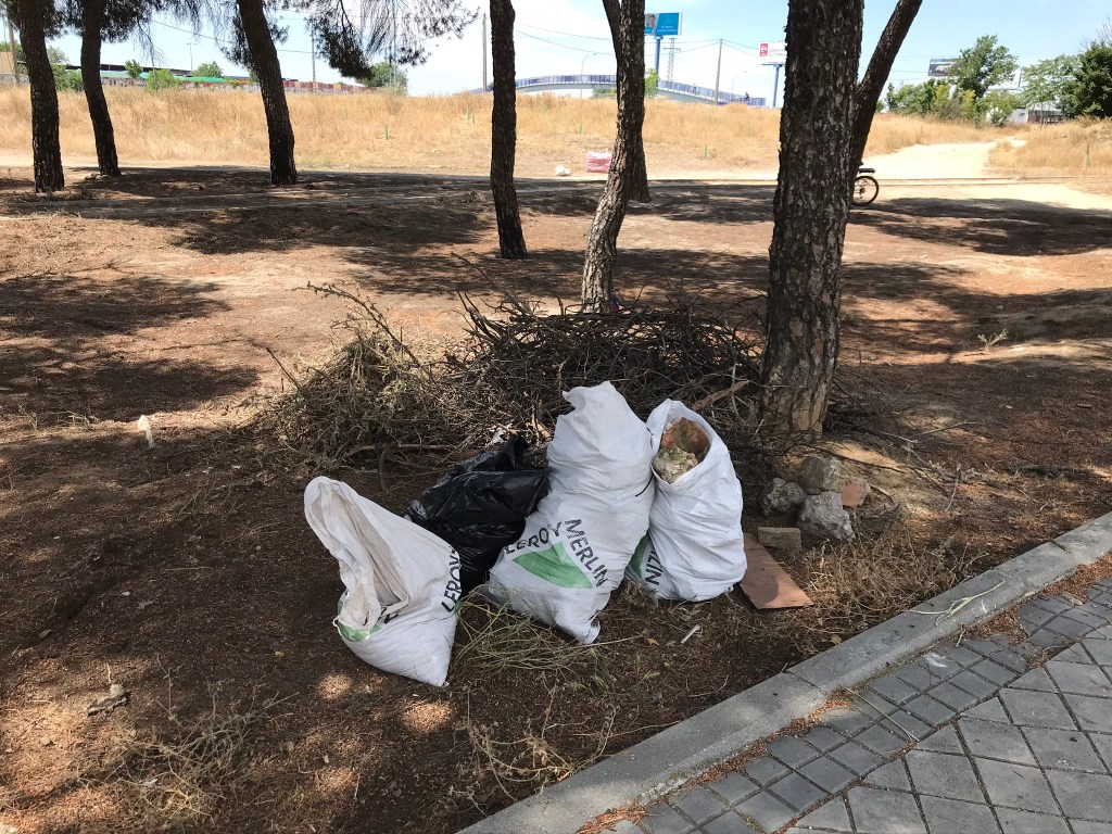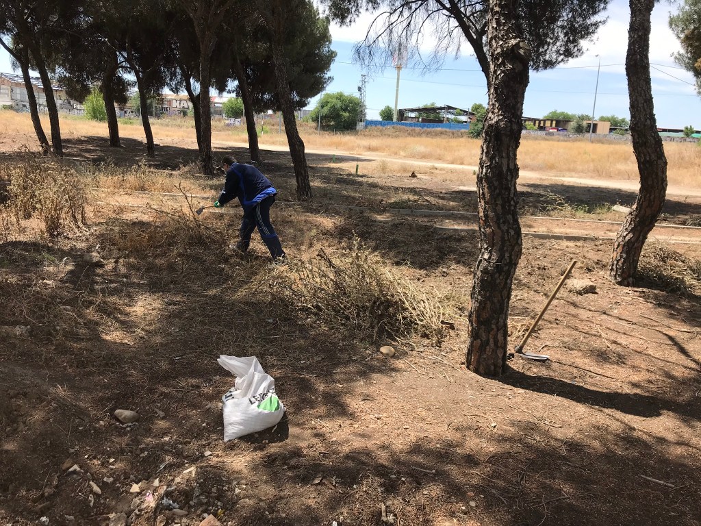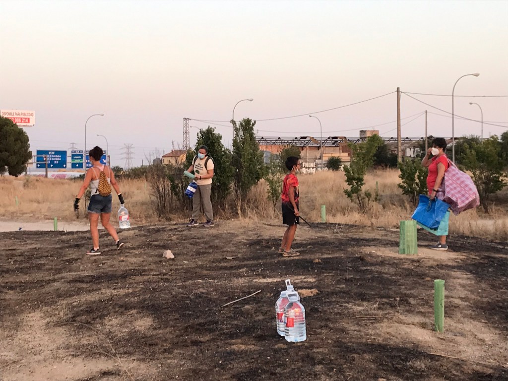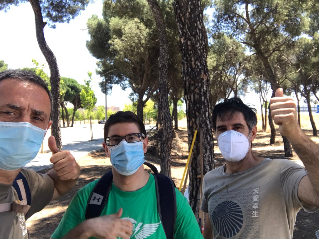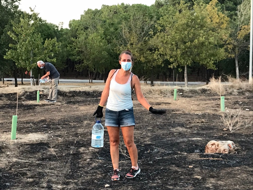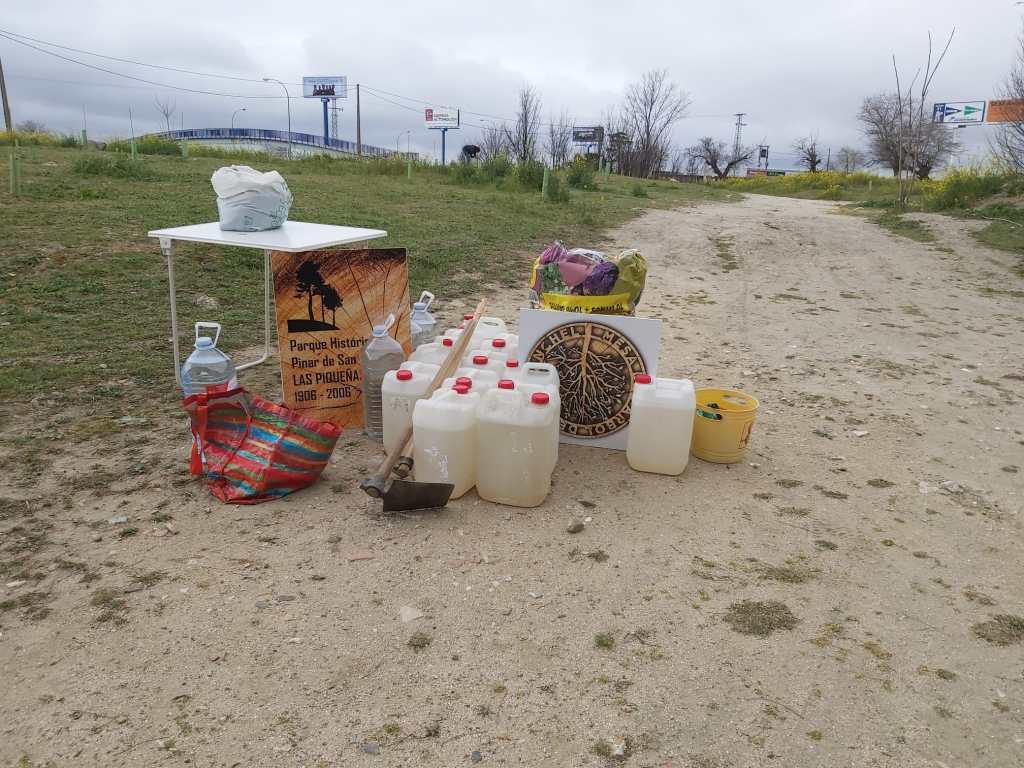 Durante estas 20 semanas hemos tenido mucha ayuda de vecinos, amigos y familiares, que han hecho posible salvar el verano y pasar septiembre con más de 150 arbolitos en perfecto estado. Además del calor, hemos sufrido el vandalismo, nos han desaparecido árboles de una semana para otra, incluso un ciprés que teníamos a la entrada también se lo han llevado, para redondear hubo un incendio, la última semana de agosto, de maleza sin desbrozar. Después de innumerables llamadas al 010, Medio Ambiente Ayto. Madrid, Junta Municipal, Buenos Días Madrid, para que sanearan la zona avisando del riesgo de incendio, y ahí sigue todavía sin desbrozar. Os imagináis si el incendio salta al Pinar de San José y a la Fundación.