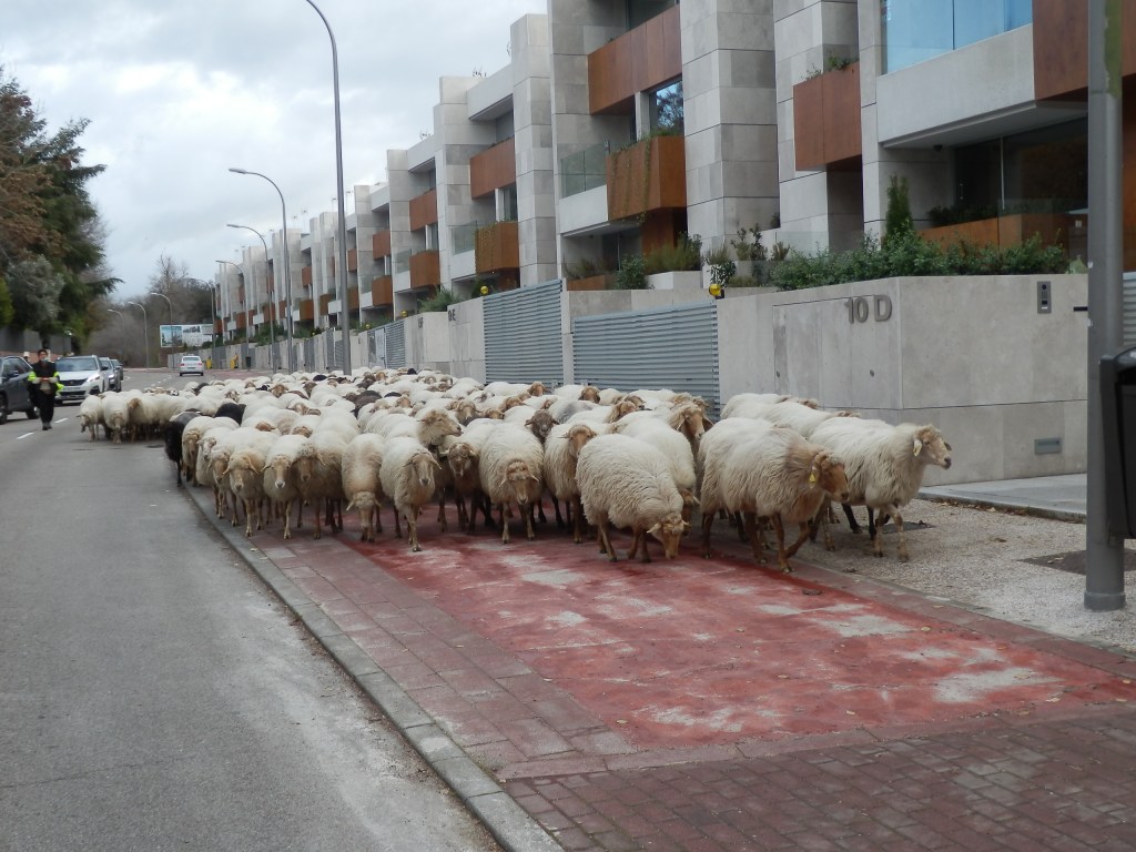 El Anillo Verde Ciclista era un río de dos ruedas y el rebaño no tenía otro espacio que ese para entrar en Madrid. Más de un ciclista mostraría su desacuerdo con el paso de las ovejas por «su espacio», pero pocos ciclistas saben, ni falta les hace, que el tramo entre Arroyofresno y Sinesio Delgado es camino senderista, no exclusivo ciclista, es Senda Real / GR 124 , ruta que se trabajaron cientos de personas a  lo largo de una quincena de años para que se habilitase como tal.