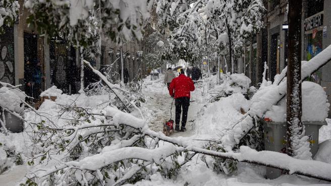 La nevada inusual que ha tenido Madrid ha provocado la rotura y vuelco de miles de árboles. Afortunadamente esto no ha provocado víctimas mortales.