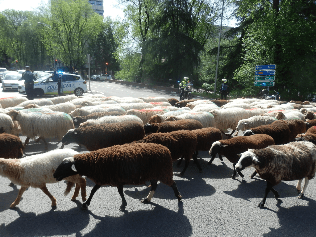 Cualquiera que madrugara un poco en este 1º de Mayo de 2022 pudo encontrarse con un rebaño de 400 ovejas por ciertas calles de Madrid.