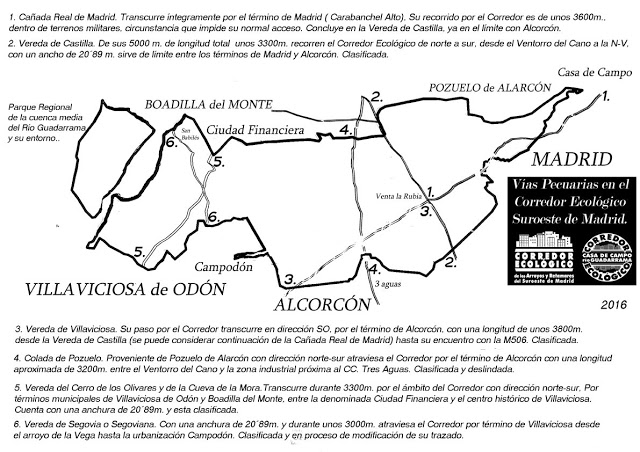 Este camino no es otro que el de la nueva vía pecuaria, creada por la Comunidad de Madrid, con la idea de sustituir la antigua y genuina Cañada Real de Madrid. Esta última discurría, discurre, por los terrenos de zonas deportivas militares ( La Dehesa y San Jorge) .