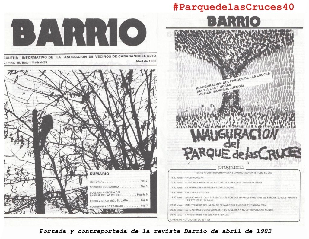 En 2023 se cumplen 40 años de la inauguración del parque de las Cruces por Enrique Tierno Galván el 17 de abril de 1983