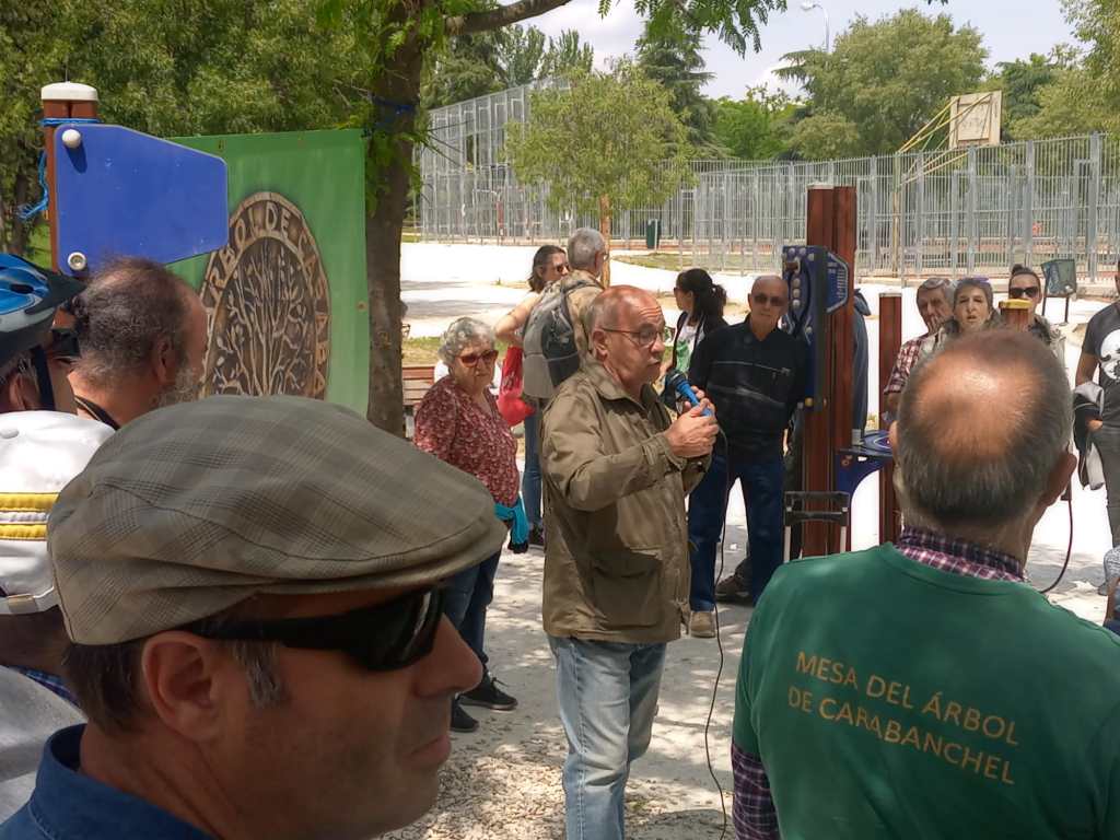 La concentración la organizo La Mesa del Árbol de Carabanchel para denunciar lo que esta sucediendo en el Parque de las Cruces y que eso mismo pasa en mas parques de la capital, por eso se invito colectivos que lo están sufriendo.