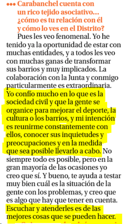 Con esto y viendo cómo se desarrolló el pleno, nos deja claro, que su postura de diálogo con las asociaciones y los vecinos del barrio no va a existir y deja en entredicho la contestación que dio al periódico A VOCES DE CARABANCHEL sobre su relación con el tejido asociativo de Carabanchel.