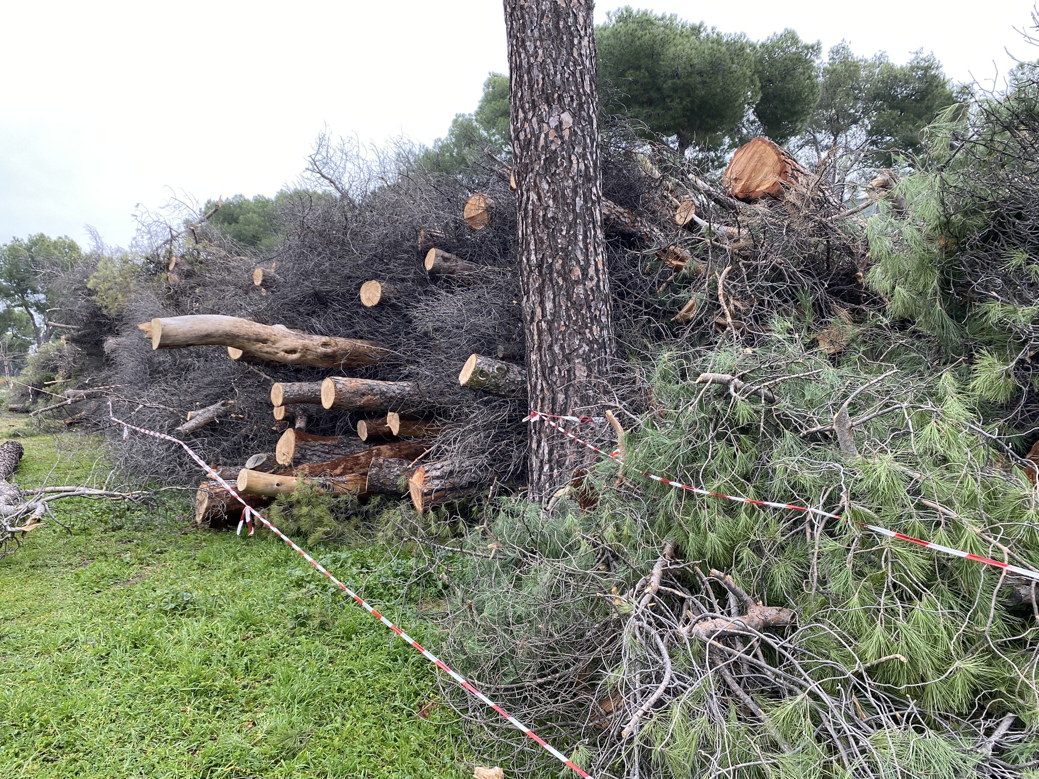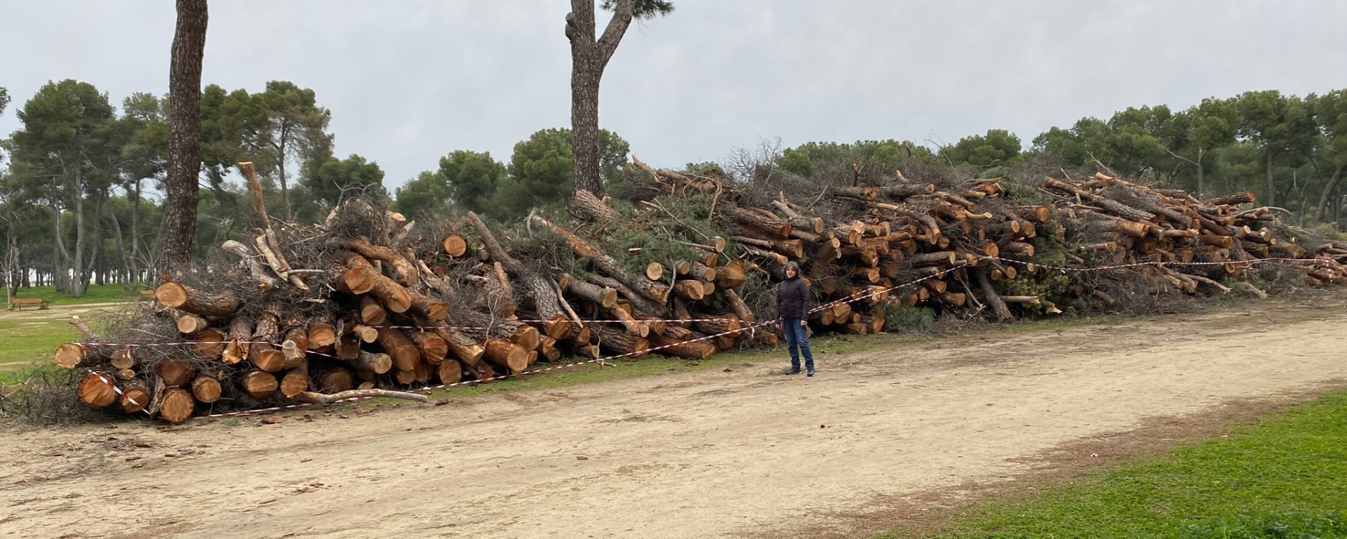En estas dos ultimas semanas la contrata privada que lleva el mantenimiento desde el 2013 ha procedido a la tala de mas de 100 pinos centenarios.