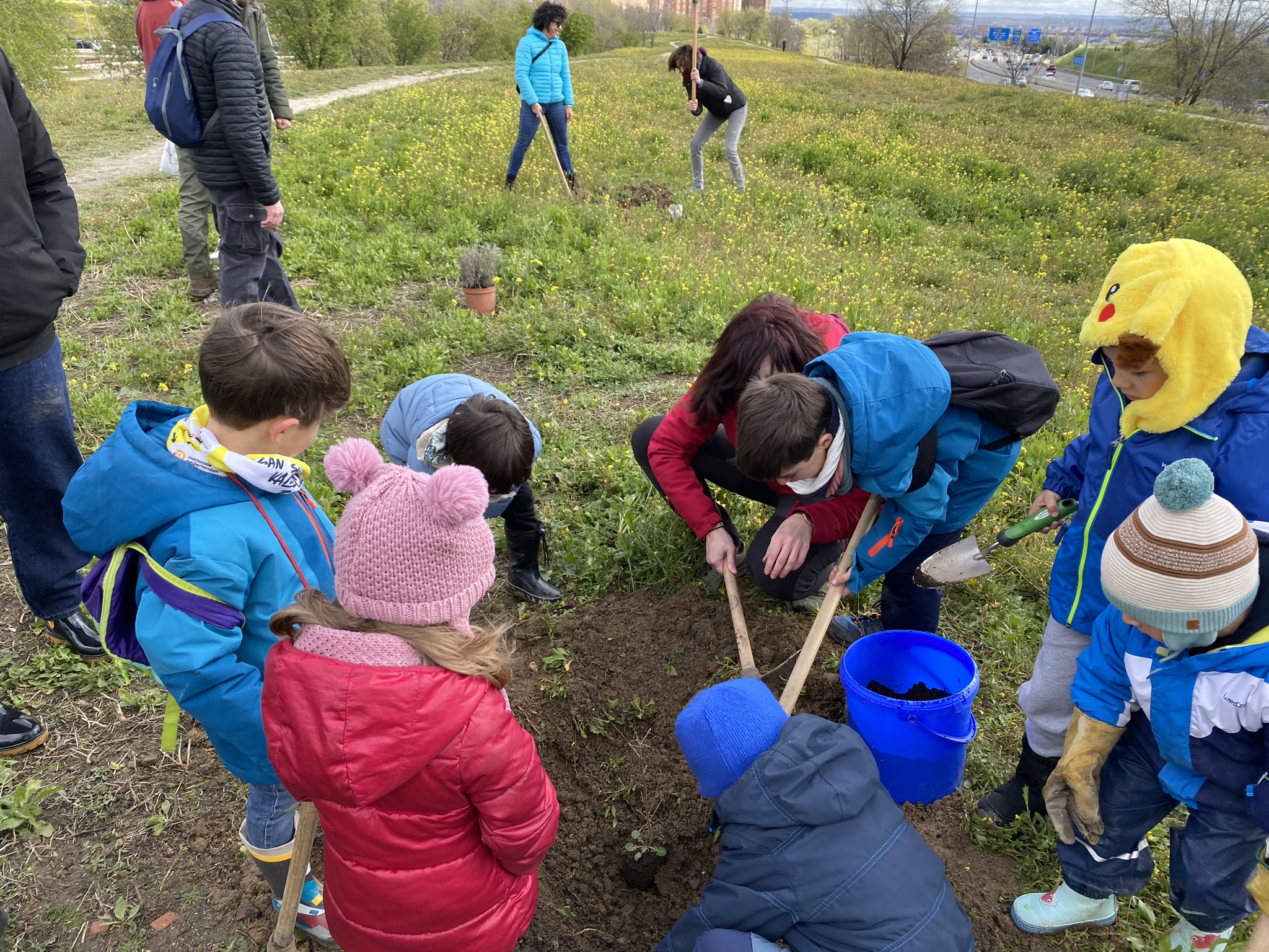 - *Familias del AMPA del colegio Perú, niños que con sus padres y abuelos disfrutaron ayudando a plantar, regando y por ejemplo viendo a las lombrices que oxigenan la tierra.