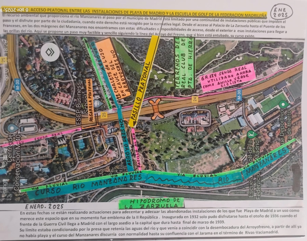El caso más sangrante lo constituye, en estos momentos, la fácil solución que sería habilitar un paso en la confluencia de Playa de Madrid con las instalaciones de golf de la Federación Madrileña de este deporte.