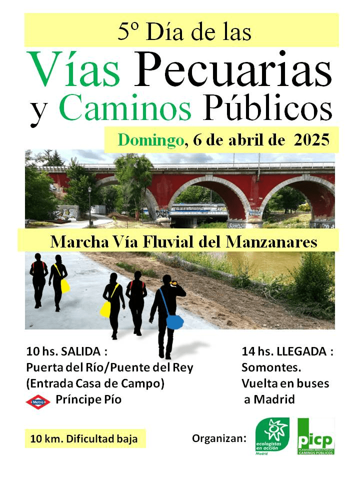 Coincidiendo con esta fecha, hacíamos la XVIII Marcha de Madrid a Somontes por los márgenes del rio Manzanares que estuvieron hasta hace poco imposibles de transitar. Tras más de una decena de años de reivindicaciones se pudo conseguir lo que ahora es un logro ciudadano de reconquistar un espacio público: La Zona de Servidumbre