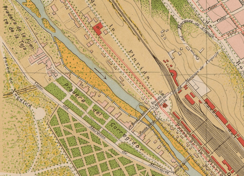 Justo viene a coincidir con el trazado del Arroyo del Fresno, que como otros arroyos ha sufrido la operación de entubamiento y desaparición lamentable del mapa.
