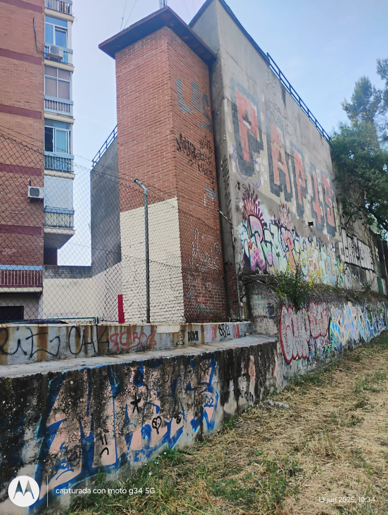 OBRAS SOTERRAMIENTO Vista desde paso ciclista De Ctra Boadilla a S. Manuel Tramo de tapia no original Grafiteada totalmente
