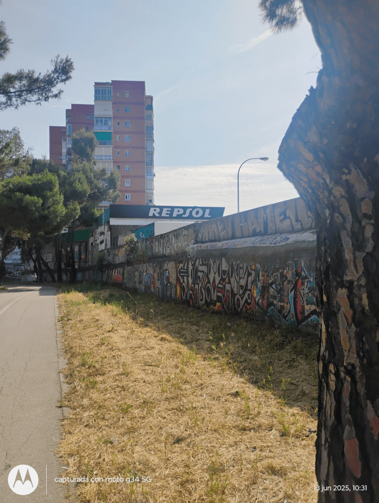 Eso obliga a un cambio de ubicación de la estación de servicio con la consiguiente limpieza de dicha tapia. Aparte la proximidad a los edificios de la calle San Manuel es base suficiente para desmantelar o trasladar esa instalación. El vecindario está expuesto a cualquier incidente no deseado derivado de la actividad de la gasolinera. Razón esta que habría de primar sobre cualquier otra consideración. La importante obra de soterramiento de la A 5 está obligada a reponer y conservar este resto del siglo XVIII.