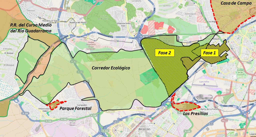 En este caso se trata de reclamar la conexión del río Manzanares con el río Guadarrama a través del conocido proyecto del Corredor Ecológico del Suroeste.