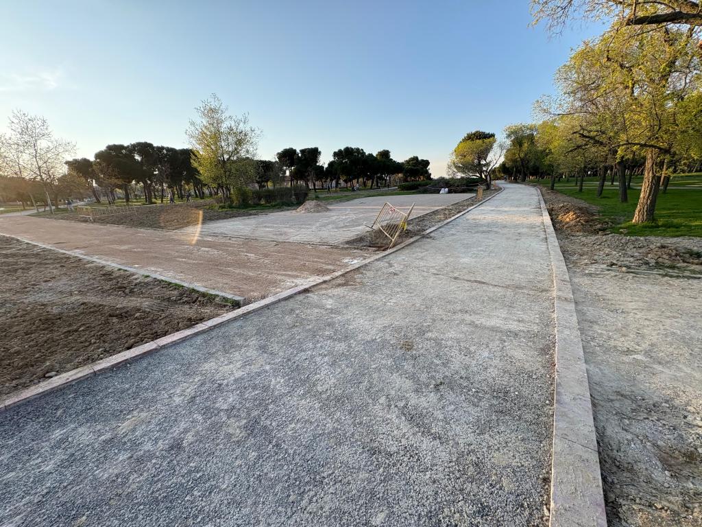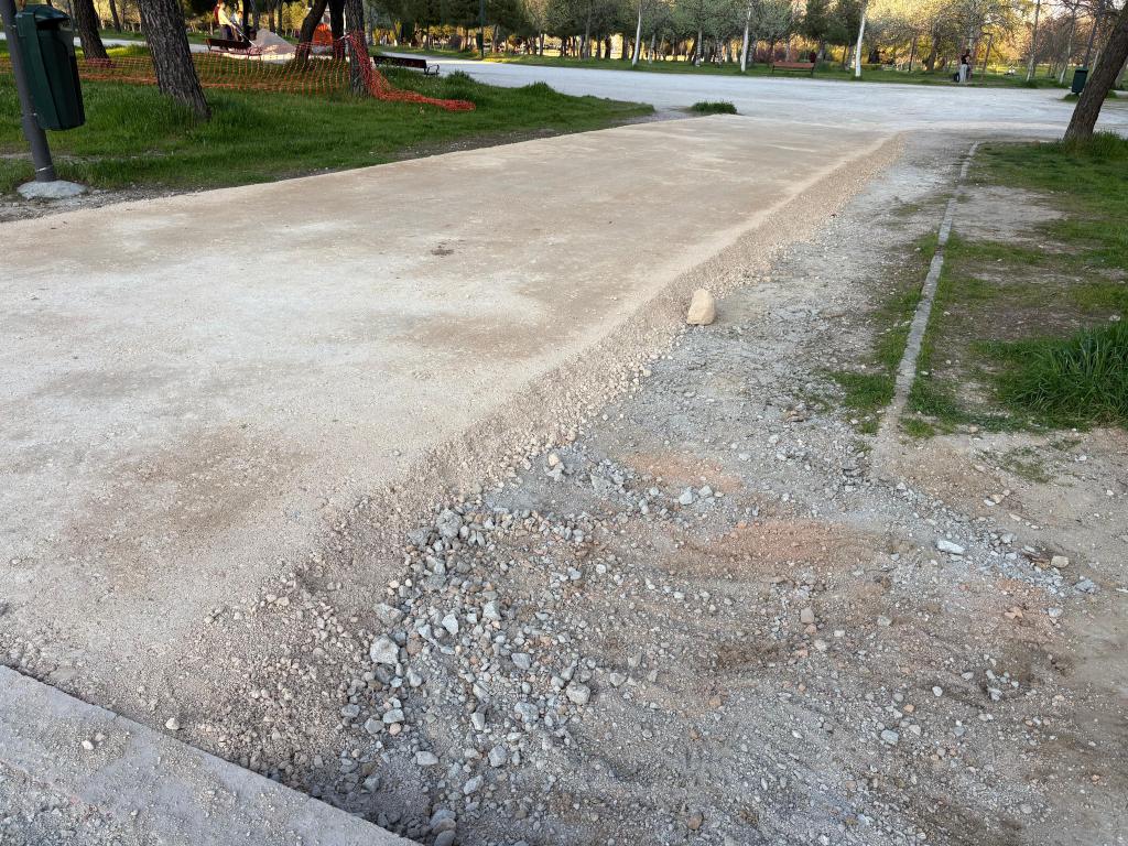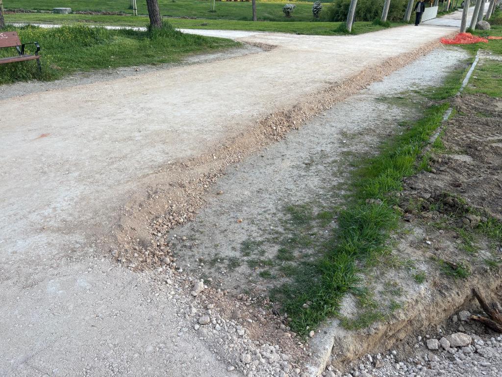 Lo que debería ser un proyecto de renaturalización se está ejecutando como una obra de urbanización convencional, basada en hormigón, zahorras compactadas y elementos prefabricados. Las imágenes de la obra no dejan lugar a dudas: caminos rígidos, bordillos continuos y materiales propios de calles, no de un parque con vocación forestal.