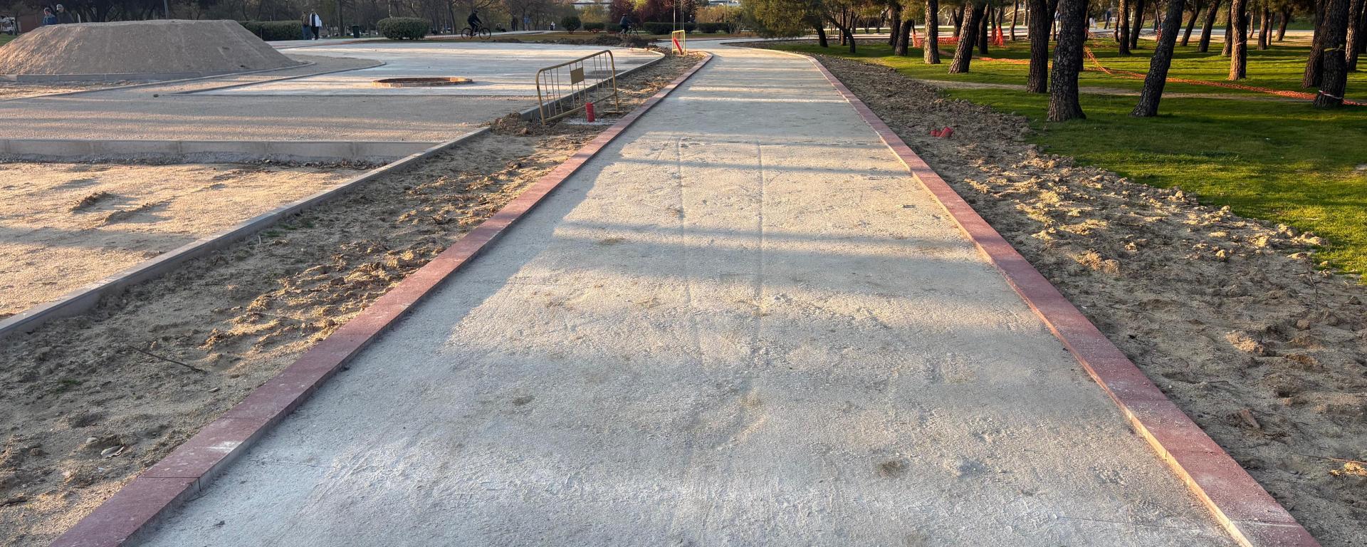 Lo que debería ser un proyecto de renaturalización se está ejecutando como una obra de urbanización convencional, basada en hormigón, zahorras compactadas y elementos prefabricados. Las imágenes de la obra no dejan lugar a dudas: caminos rígidos, bordillos continuos y materiales propios de calles, no de un parque con vocación forestal.